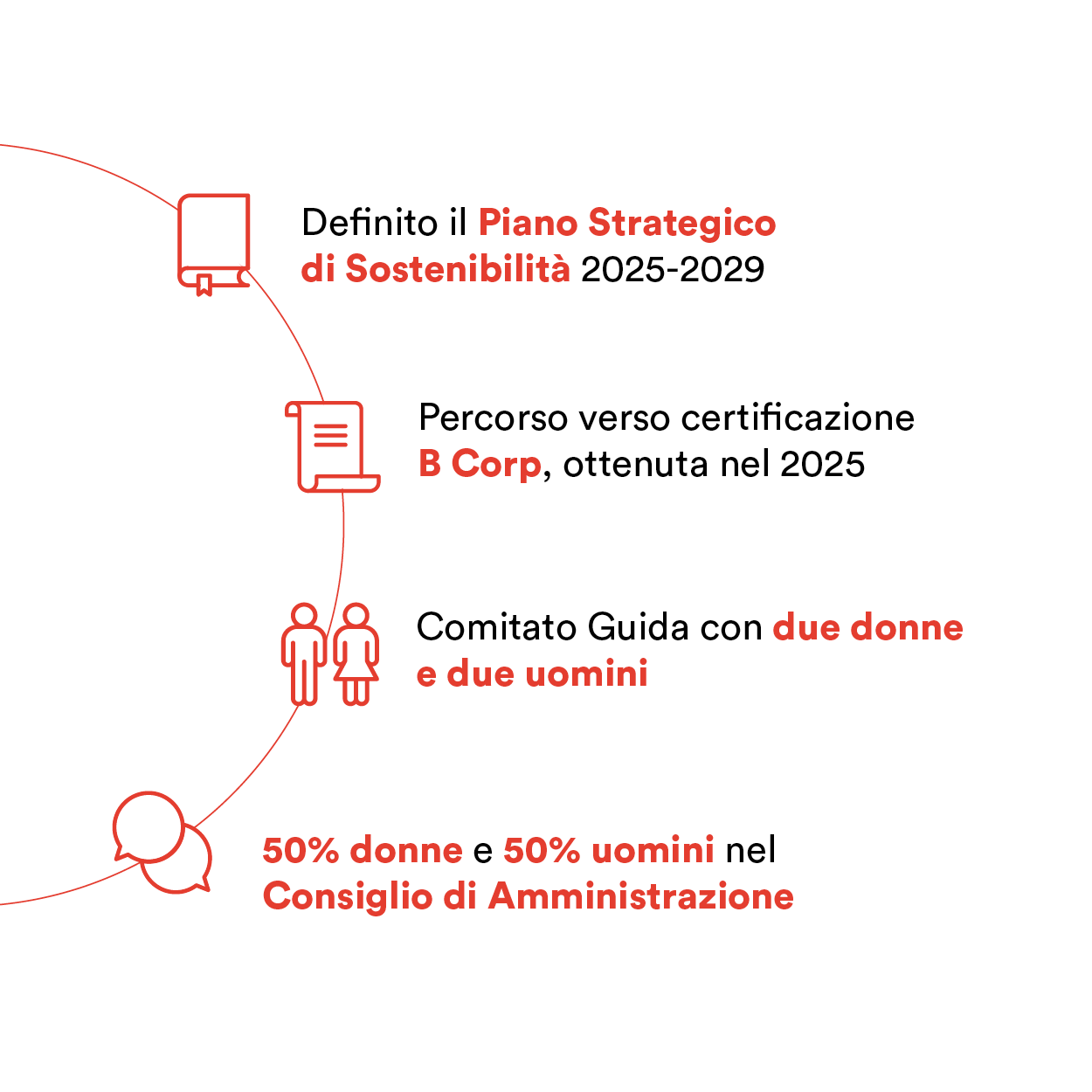 Siamo convinti che la sostenibilità si basi anche sulla trasparenza e sull’affidabilità dei dati. Per strutturare un processo di raccolta di dati ambientali, sociali e di governance e validare una procedura di reporting, nel corso del 2024 abbiamo usato un software finalizzato alla raccolta sia quantitativa che qualitativa delle informazioni inserite nel Bilancio di Sostenibilità.