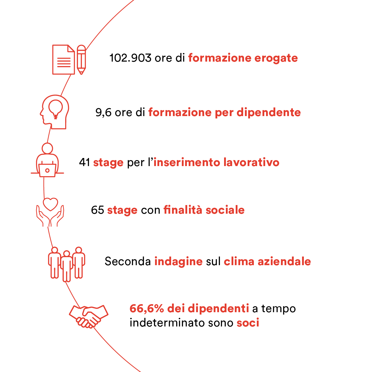 Questo approccio si fonda su principi solidi, come quelli sanciti dal nostro Codice Etico, che si ispira ai valori della cooperazione e guida i comportamenti sia interni che esterni. Dedichiamo un’attenzione specifica allo sviluppo professionale e personale dei dipendenti, perché crediamo che la loro crescita sia un motore irrinunciabile per l’intera organizzazione. Per garantire che questi principi siano applicati in modo efficace, abbiamo implementato una serie di canali di comunicazione che permettono di segnalare comportamenti non conformi. Estendiamo questo impegno anche ai lavoratori nella catena del valore e alle comunità interessate. Ci poniamo come un attore sociale che genera valore condiviso, rafforza i legami e contribuisce al benessere collettivo dei territori in cui operiamo.