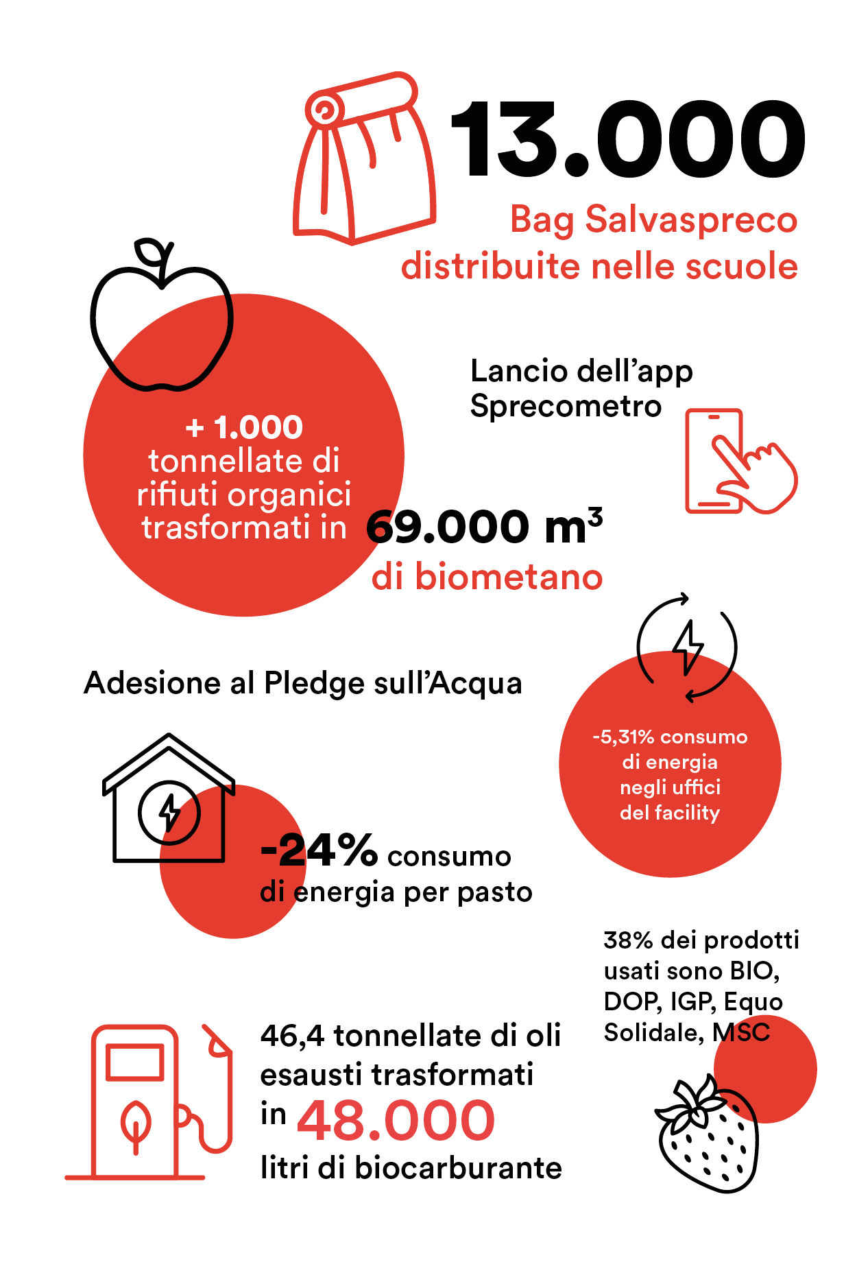 Questo approccio guida le nostre azioni: dagli investimenti per l’efficienza energetica e il passaggio a fonti rinnovabili, alla protezione dell’acqua come bene primario, fino allo sforzo di proporre un’economia circolare che trasformi gli scarti in una nuova risorsa. Per un’azienda come la nostra, questo impegno trova il suo cuore nella lotta allo spreco alimentare, che interpretiamo non solo come una responsabilità ambientale, ma come un dovere educativo. Ogni pasto salvato e ogni persona sensibilizzata rappresentano il successo della nostra visione: costruire, gesto dopo gesto, un sistema alimentare più giusto e sostenibile per tutti.